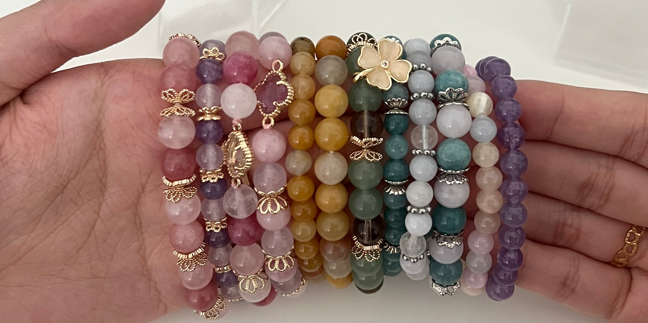 Blush Clover - Rose Quartz, White Jade, and Cherry Quartz